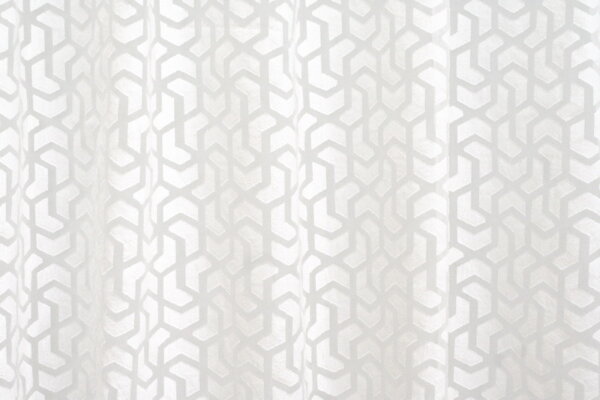 Geometrikus mintásra nyírt, fényáteresztő, organza függöny. Ólomzsinóros, prémium minőségű függöny. Mosás 30 C fokon, vasalás 120 C fokon javasolt. Anyaga: nyírt organza Magasság: 295 cm Anyagösszetétel: 100% poliészter
