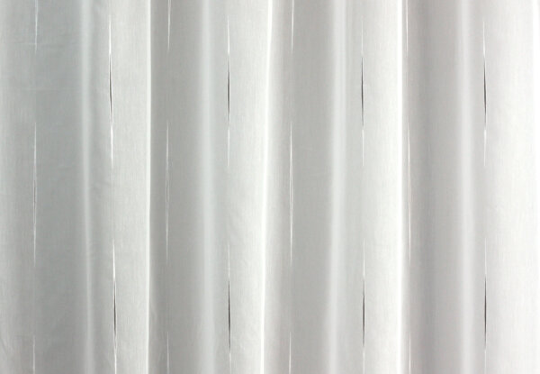 Fehér, nyírt vonal mintás sable függöny, 3 színben, 2 méretben. Alul ólomzsinórral, mely szép esést és kellő tartást biztosít. Hagyományos, és modern stílushoz is jól illeszthető. Kímélő mosás után helyére akasztva szárítható, így vasalást nem igényel. Anyaga: nyírt sablé Magasság: 295 cm Anyagösszetétel: 100% poliészter