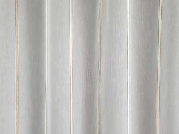 Sablé jellegű, bársonyos tapintatú, szürke alapon színes csíkokkal díszített, fényáteresztő függöny. Mosás 30 C fokon, vasalás 120 C fokon javasolt. Anyag típus: sablé