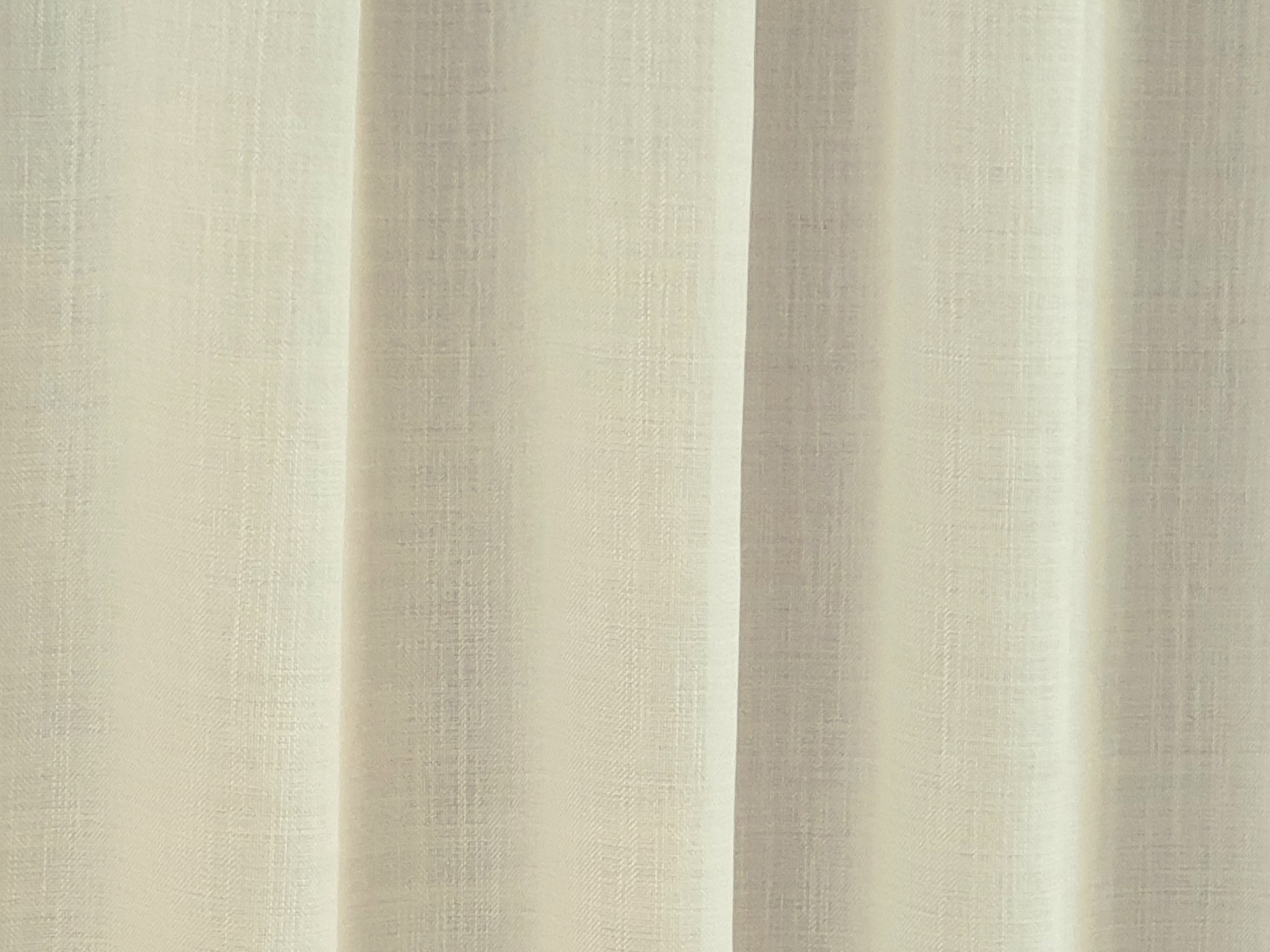 Természetes hatású, szablé, pasztell fényáteresztő dekorfüggöny. Dekorációs célra, sötétítésre nem alkalmas. Kímélő mosás 30 C fokon, vasalás 120 C fokon javasolt. Ólomzsinóros. Anyag típus: sablé