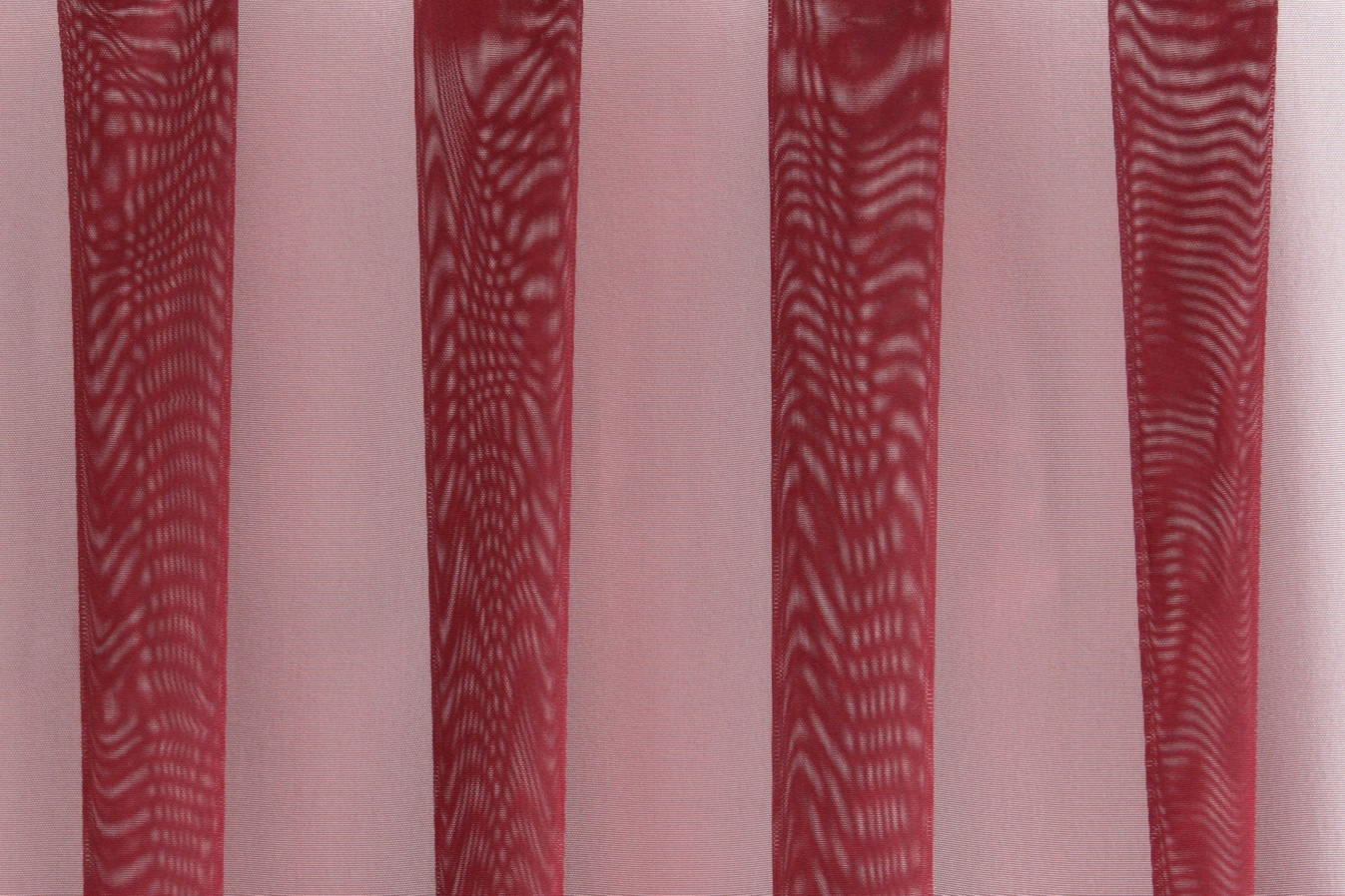 Minden stílushoz jól illeszthető, elegáns hatású, függőleges csíkos, 300 cm magas, színes függöny. Anyaga laza szövésű, könnyen kezelhető, merev, fényáteresztő, sablé. Alján gyárilag ólomzsinór van. Mosás 30 C fokon, vasalás 120 C fokon javasolt.