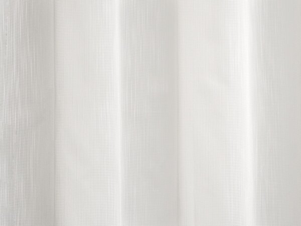Hálós jellegű, fehér, áttetsző függöny. Ólomzsinóros. Mosás 30 C fokon, vasalás 120 C fokon javasolt.