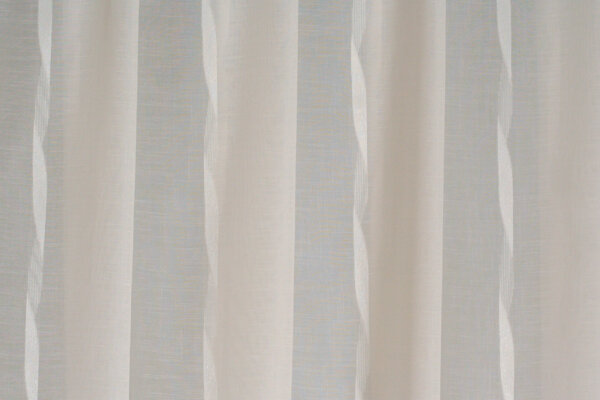 Elegáns, hagyományos stílus kedvelőinek ajánljuk ezt a fehér sablet függönyt. Hosszában selymes fényű sávok díszítik.